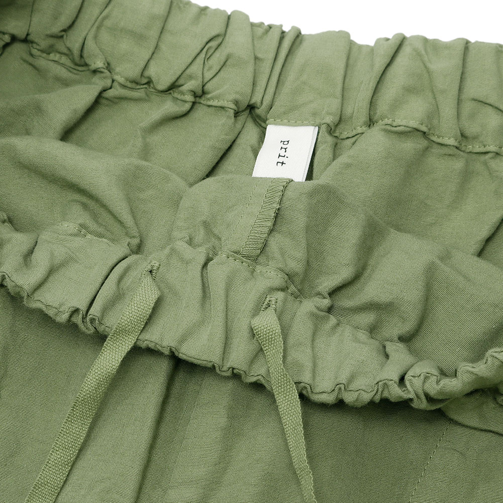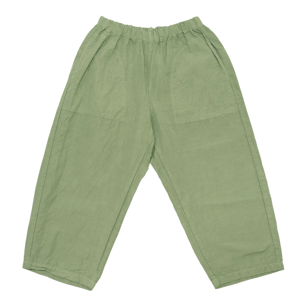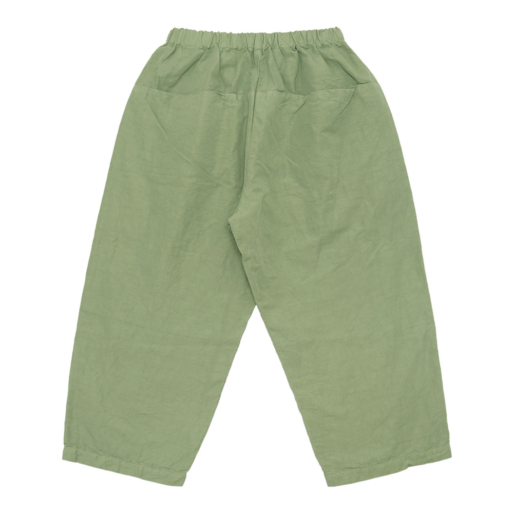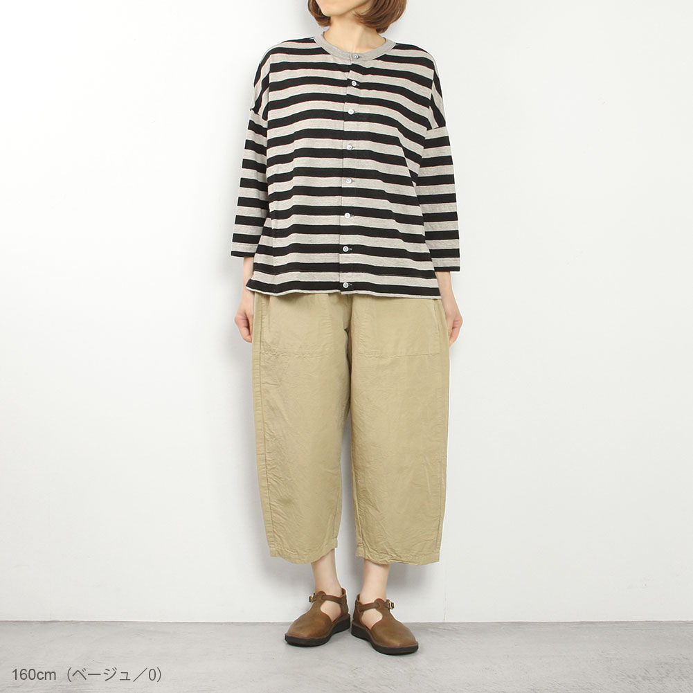 コットンリネンの軽くて柔らかい素材のコクーンパンツです。サイズ展開は0と1で、丈の長さが大きく違うのでお好みに合わせて選べます。さらりとした肌触りで夏にとても涼しく穿けます。