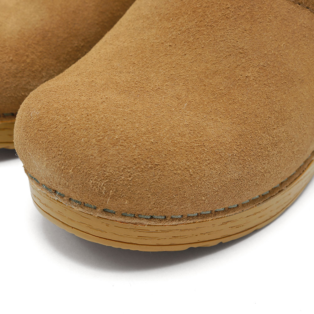 使用しているのはビロードのように表面を毛羽立たせたスエード。履き口にはシープファーをあしらい、見た目にもあたたかみのある仕上がりです。