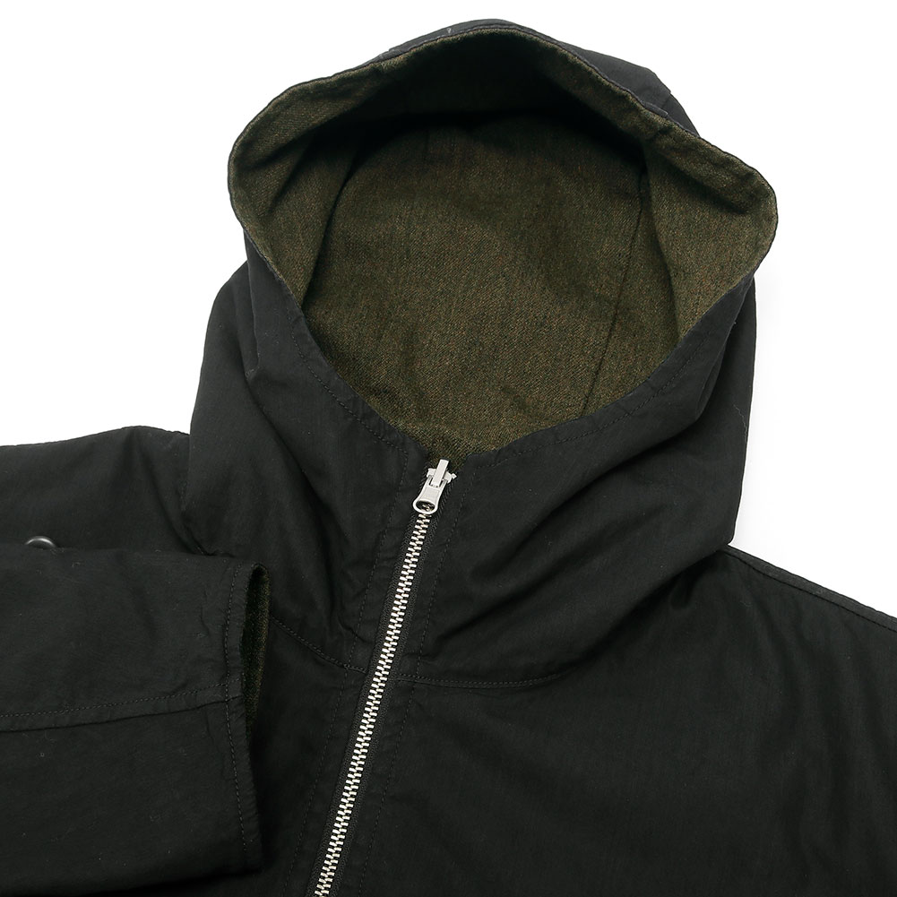1着で2つの素材感と雰囲気を楽しめる、リバーシブル仕様のフードジャケット。