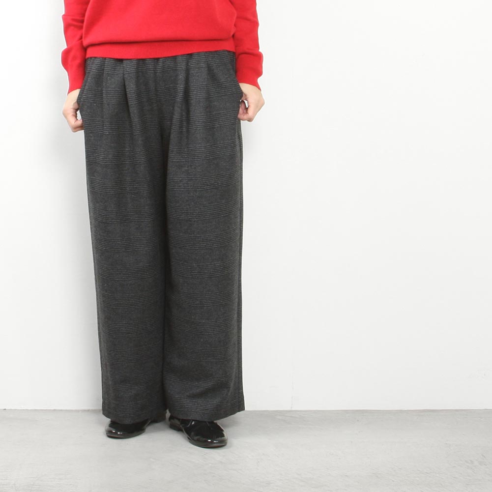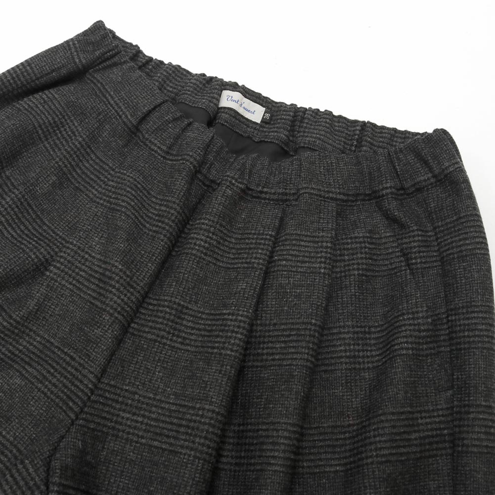 ウール混ながらチクチク感を抑えた柔らかな素材”ウォッシャブルツィード”を使用した、グレンチェックのタックパンツです。
