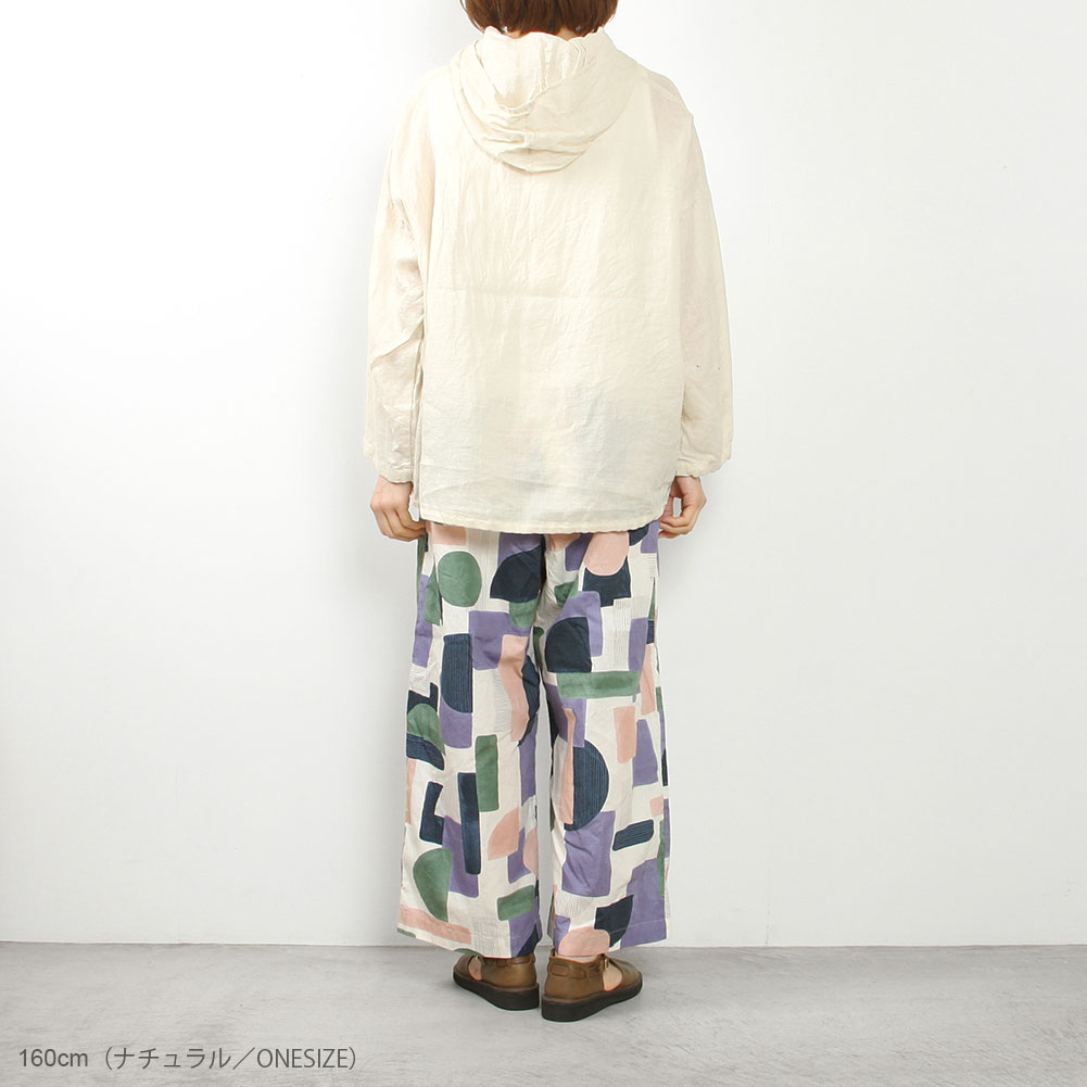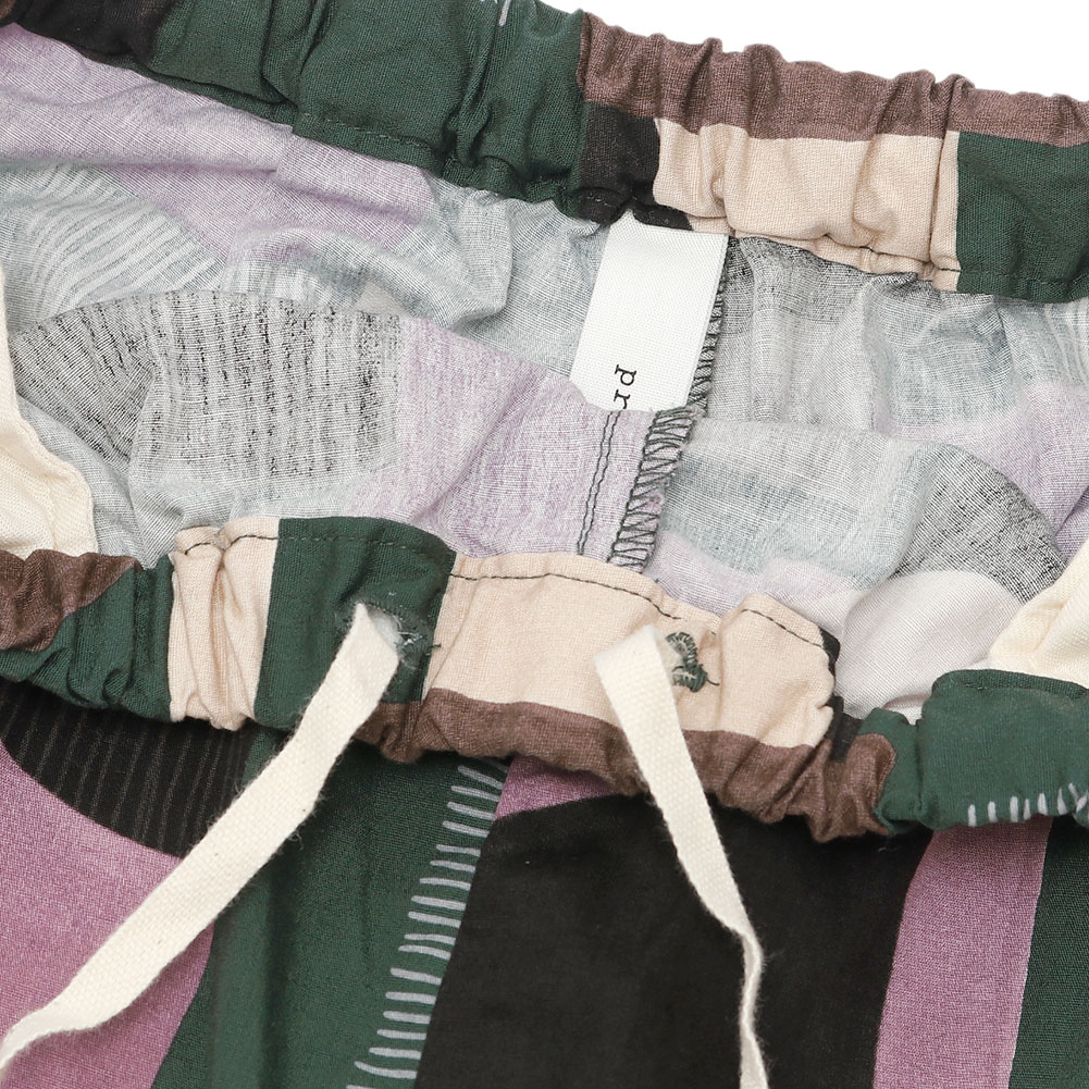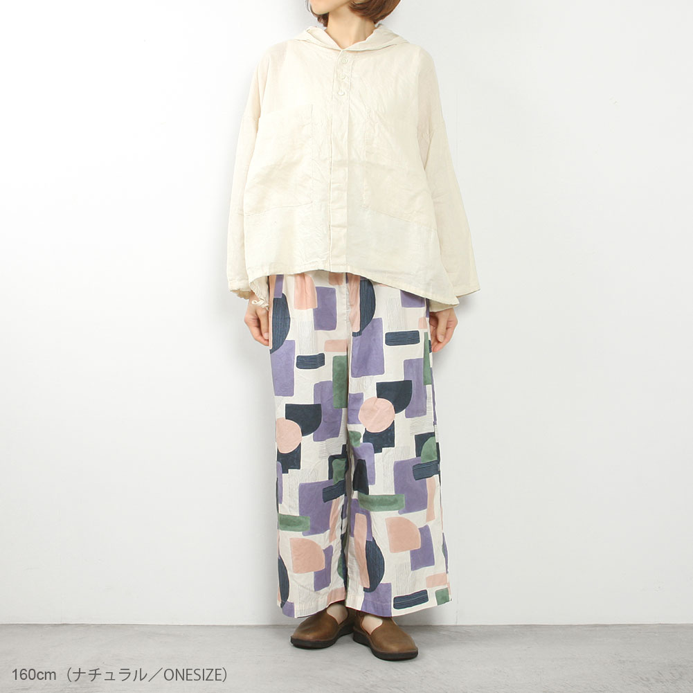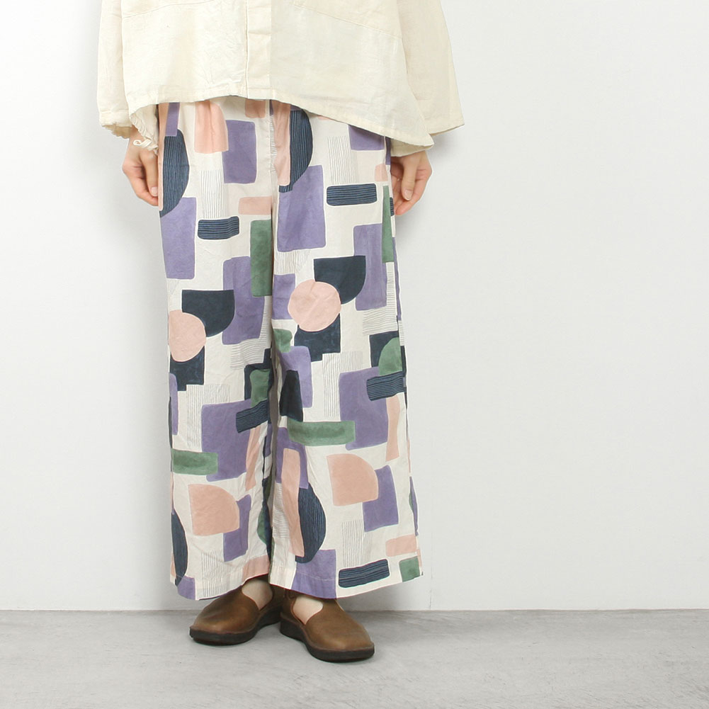 カラフルな色目で気分も上がるプリント柄。ワイド過ぎないシルエットでトップスを合わせやすいです。夏にはシンプルにTシャツとサンダルでもいいですし、ブラウスやシャツにも好相性です。