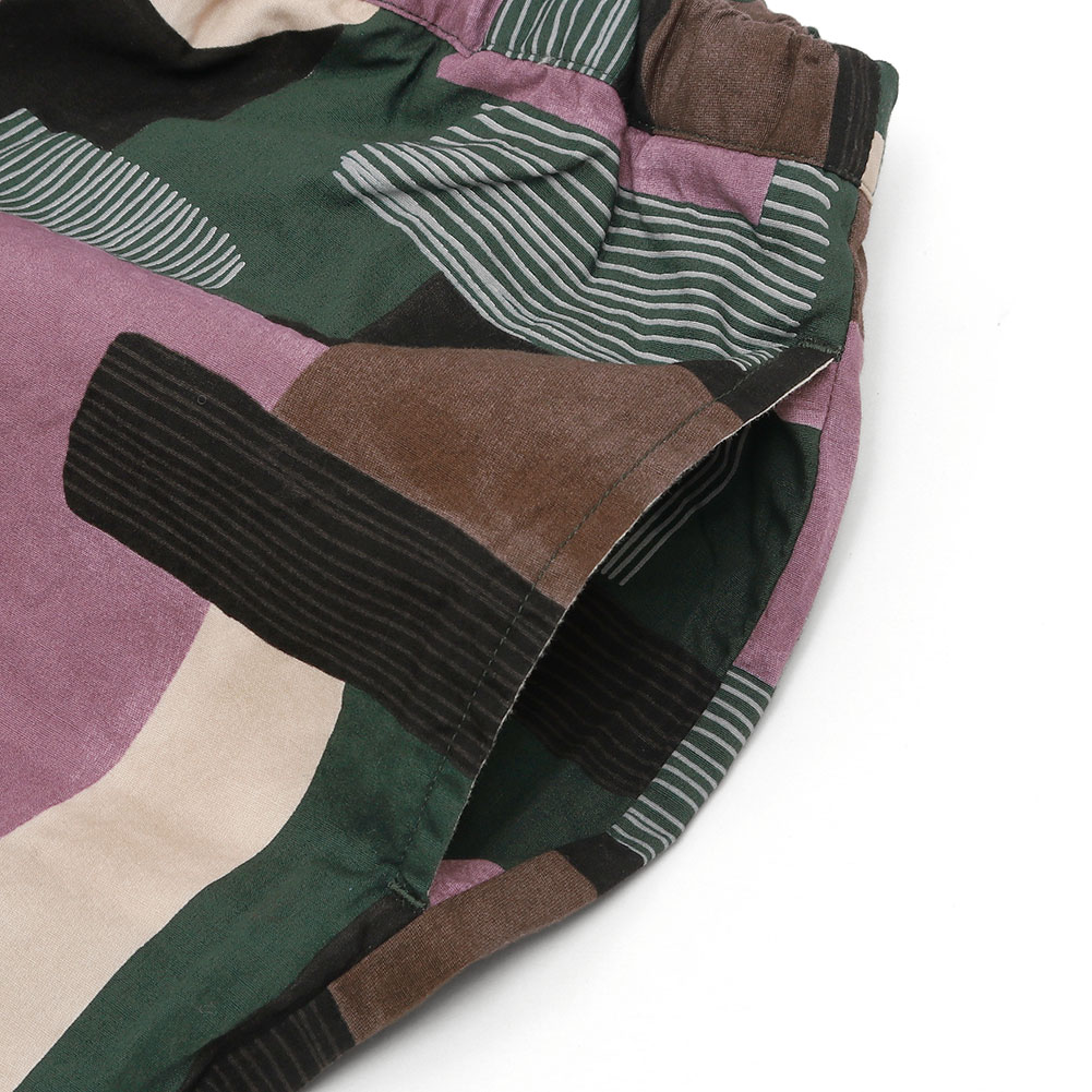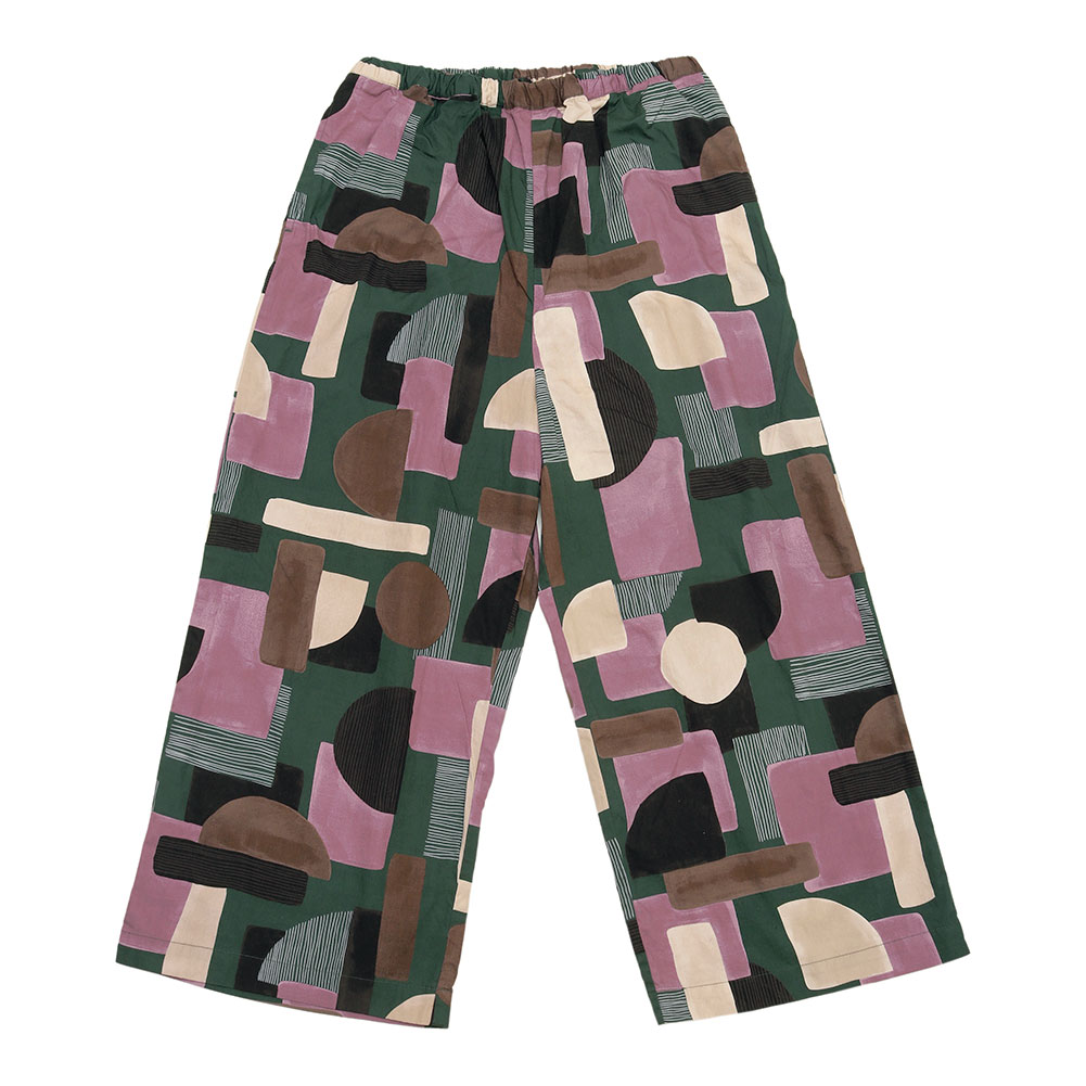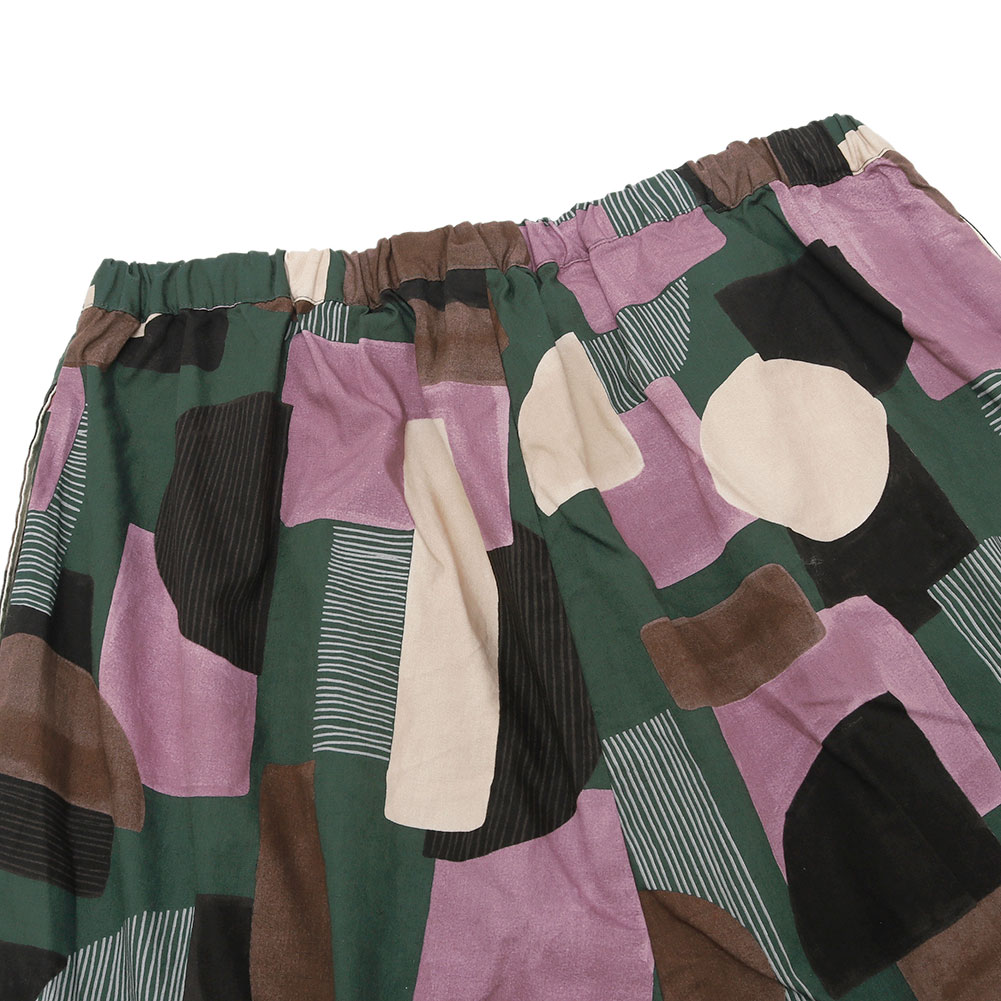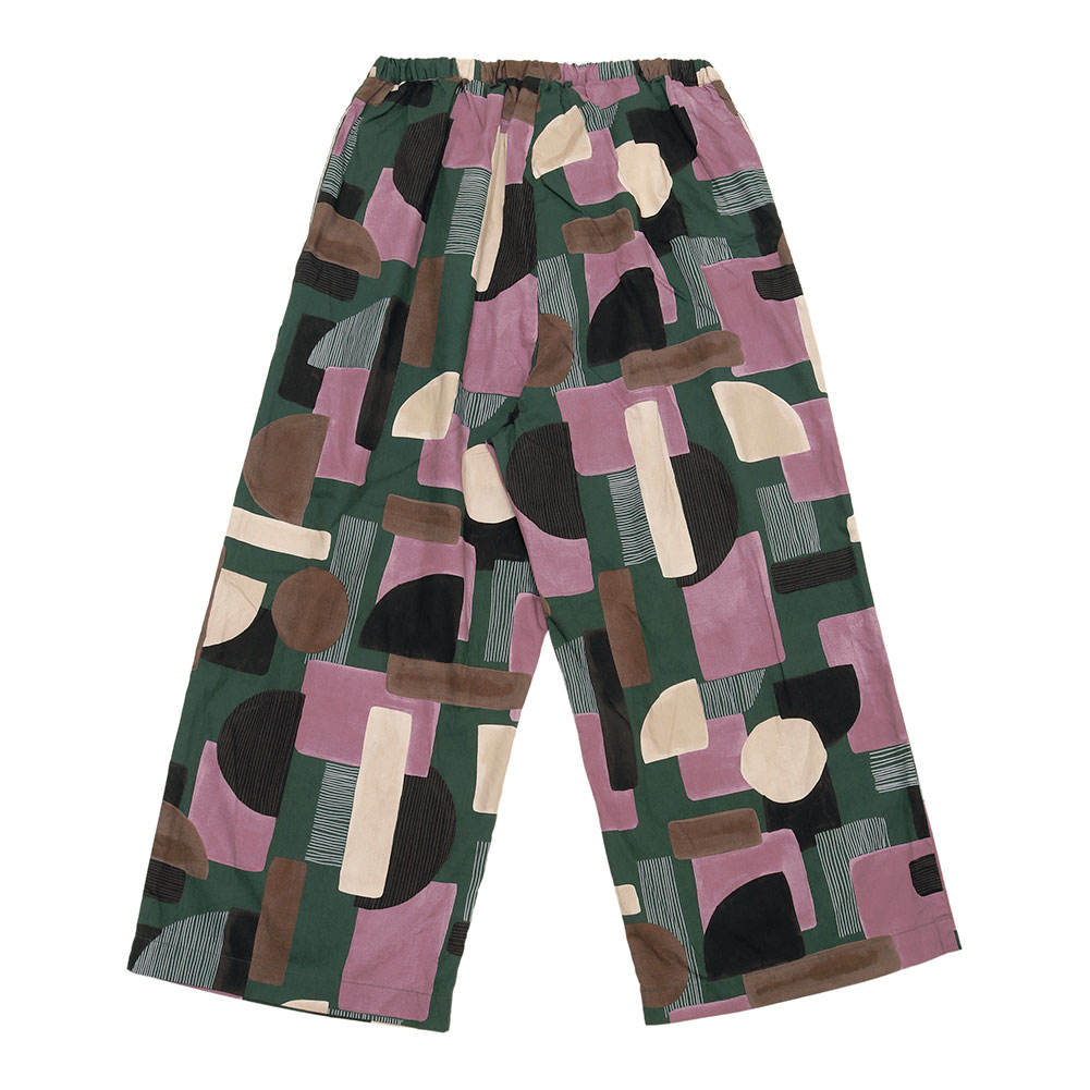 カラフルな色目で気分も上がるプリント柄。ワイド過ぎないシルエットでトップスを合わせやすいです。夏にはシンプルにTシャツとサンダルでもいいですし、ブラウスやシャツにも好相性です。