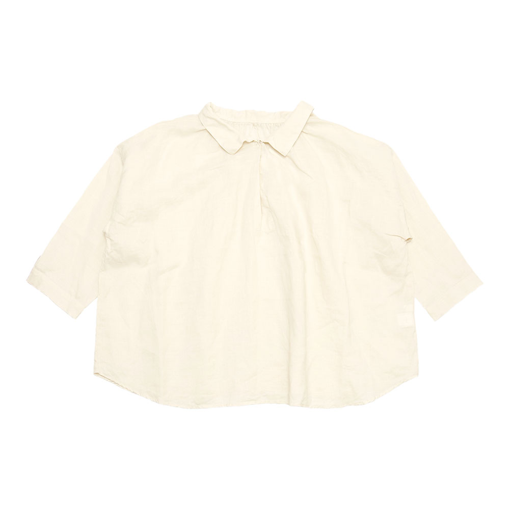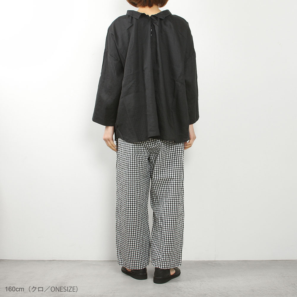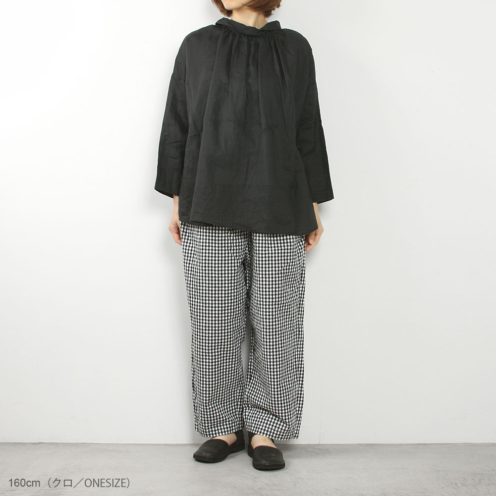 人気の2WAYギャザーブラウス。少しハリのあるリネン素材です。