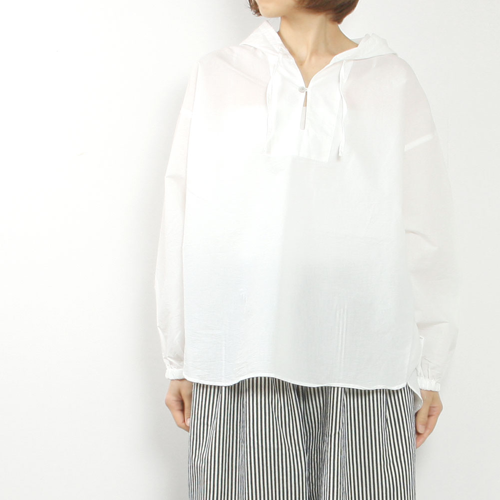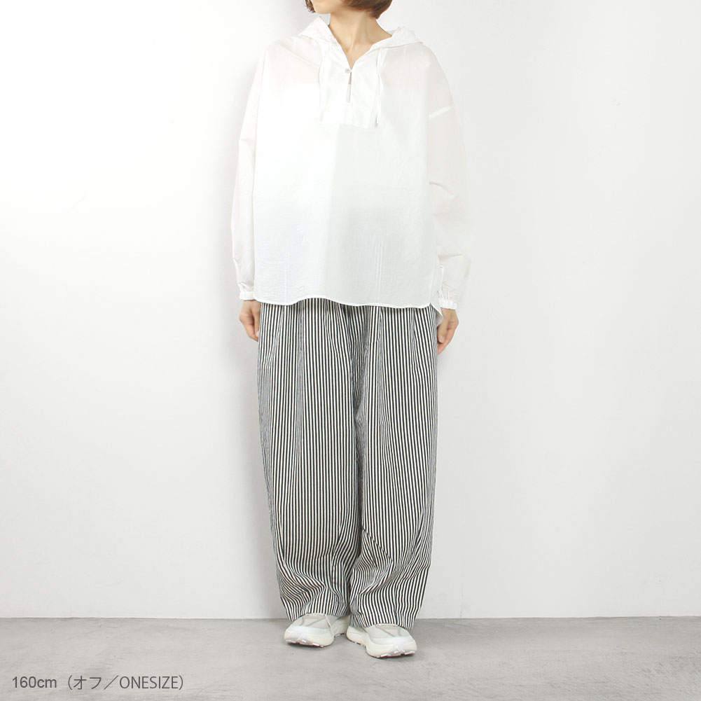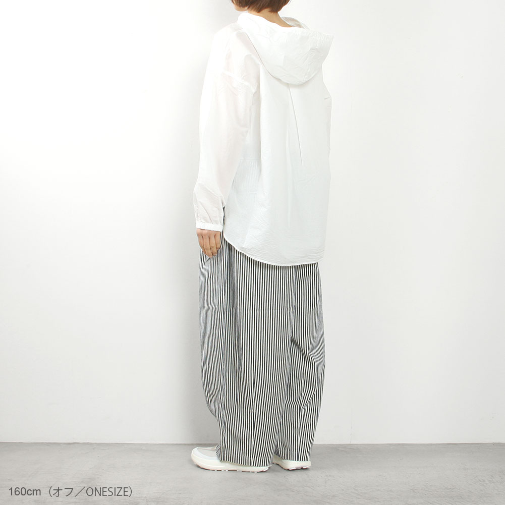 全体的にゆとりのあるシルエットで、重ね着しやすいサイズ感です。袖口はゴム入りでロールアップもしやすく、バランスが取りやすくなっています。